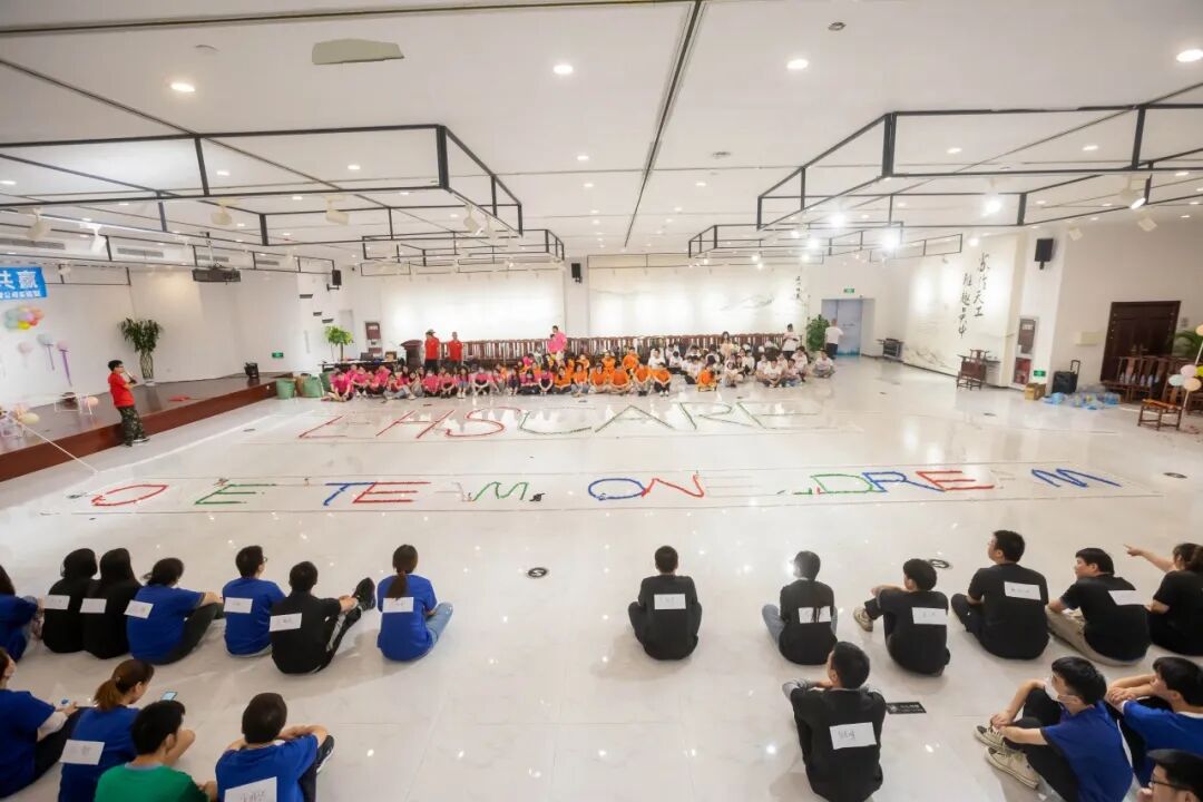 活动开始前,赵总首先发言激励大家,接着在教练的指导下大家热身后进行分组,120多人分为6组,每组负责一块区域搭建骨牌还有轨道,最后再依次串连、汇聚成整体。