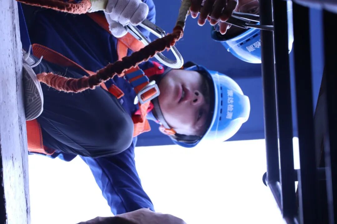 ▽徒手爬上垂直陡峭的钢筋铁梯,蜘蛛侠一定是他的兄弟吧~